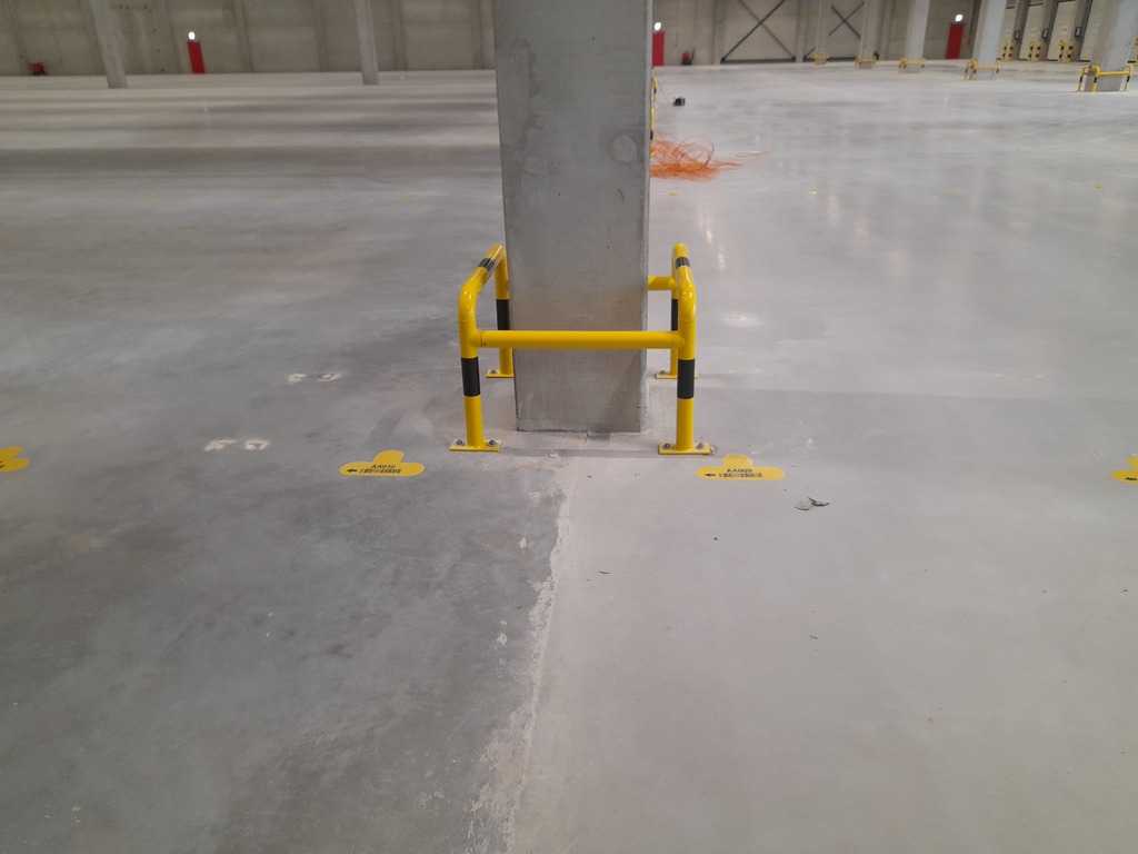 Søjlebeskytter lavet af Ø60 mm rør. Dimensioner: 500x500 mm. Højde 600 mm. på bundplade. galvaniseret Gul (leveres i 4 dele)
