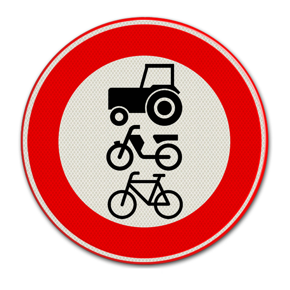 Trafikskilst C9 Lukket til ryttere, kvæg, biler og motorkøretøjer <25 km / t
